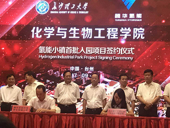 论坛开幕式上进行了氢能小镇首批入园项目签约仪式。此次签约的项目包括氢能产业投资基金、氢能客车研发中心和中试基地、移动加氢车等,同时还签约了一批产学研合作项目,总金额达23亿元。童海霞老师代表304永利集团官网入口化学与生物工程学院与主持氢能小镇项目的腾华氢能科技股份有限公司签署了产学研合作协议。