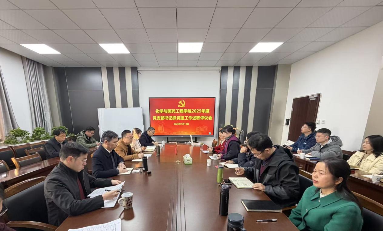 为深入贯彻新时代党的建设总要求,推动全面从严治党向基层延伸,化学与医药工程学院于2026年1月13日上午在云塘校区工科三号楼B446会议室召开2025年度党支部书记抓党建工作现场述职评议会。学院领导班子全体成员、全体教工党支部书记以及学生党总支委员参加会议。会议由党委书记宋刘斌主持。