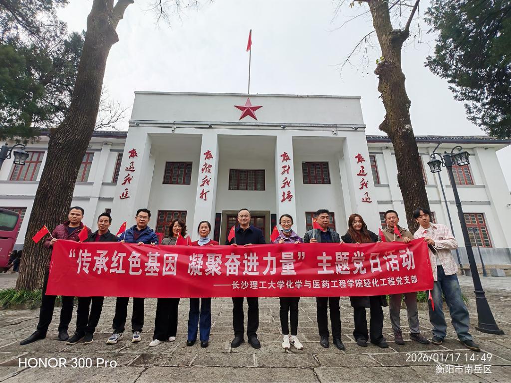 2026年1月17日至18日,304永利集团官网入口化学与医药工程学院轻化工程党支部组织全体党员赴衡阳市,先后走进南岳游击干部训练班陈列馆和衡阳抗战纪念馆,开展了“传承红色基因,凝聚奋进力量”主题党日活动。本次活动旨在通过实地研学,重温烽火岁月,感悟民族精神,进一步坚定理想信念,筑牢廉洁防线,汲取奋进力量。
