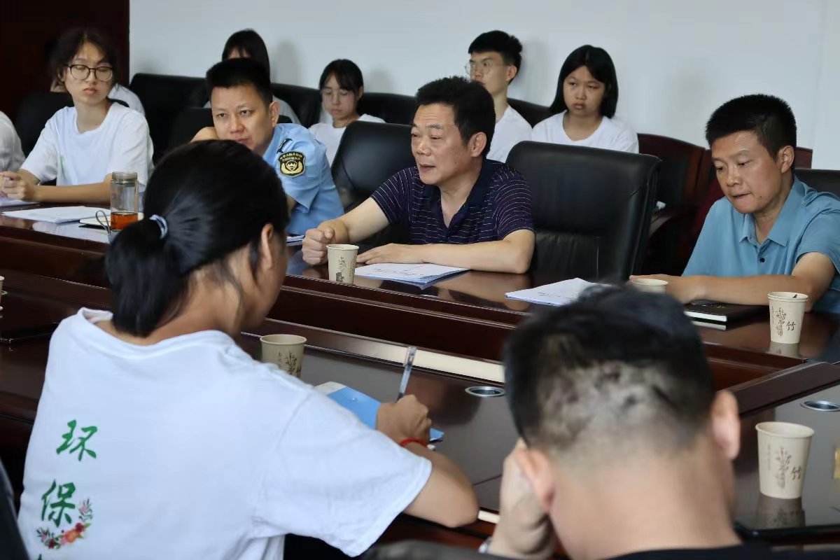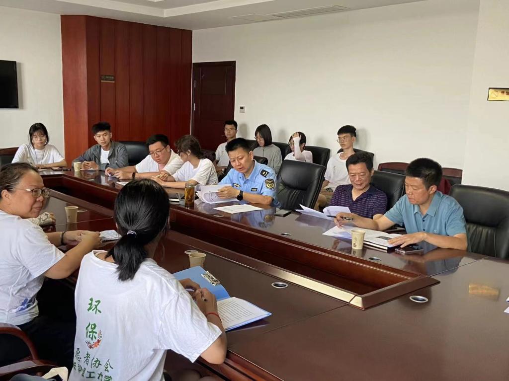 7月15日,304永利集团官网入口化学化工学院环保志愿者协会组建的湿地使者三下乡行动队抵达岳阳市生态环境局湘阴分局展开座谈,生态环境局湘阴分局副局长唐世才,总工程师胡晓红,执法大队大队长钟权辉,监测站站长沈建伟,湘阴县城管执法局副局长高胜强,湘阴县生态环保志愿者协会执行会长黎勇出席会议。
