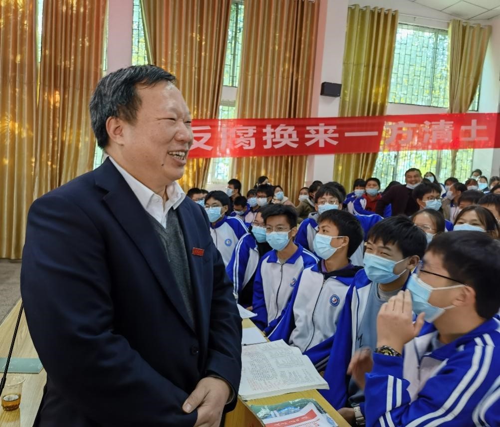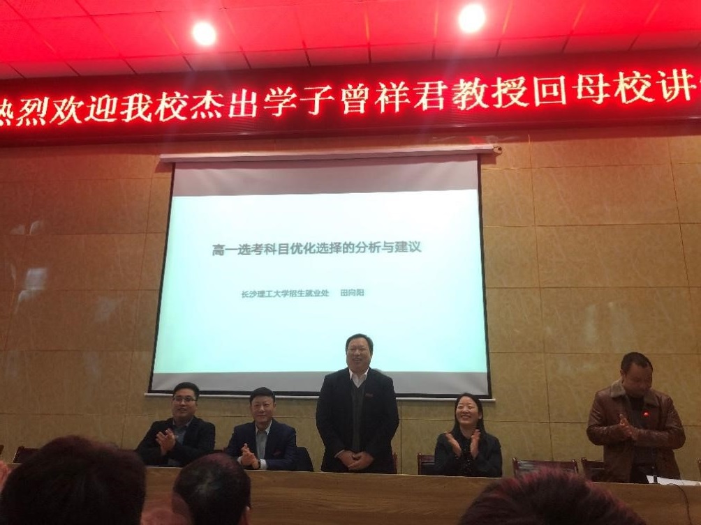 曾祥君一行第一站来到洞口县第三中学。这里是曾祥君的母校,重访故地,他向母校领导表达了内心中多年来的思念与感激,并为高一年级的学弟学妹们做了一场以“感恩 梦想 拼搏”为主题的励志讲座,通过回顾自己的求学生涯历程,勉励同学们“找一个目标跟你的名字挂钩,梦想是可以改变的,但每个人要有内心中最初的梦想。”在解答学生们如何选择专业的疑惑时,曾祥君通过自己的真实经历,结合当今国家发展需求和不同专业的特点,给同学们提出建议,得到同学们热烈地掌声回应。学校招就处副处长田向阳为洞口县第三中学师生们分享了《高一选科的优化选择分析和策略》主题讲座,并和同学生互动交流,现场气氛极为热烈。