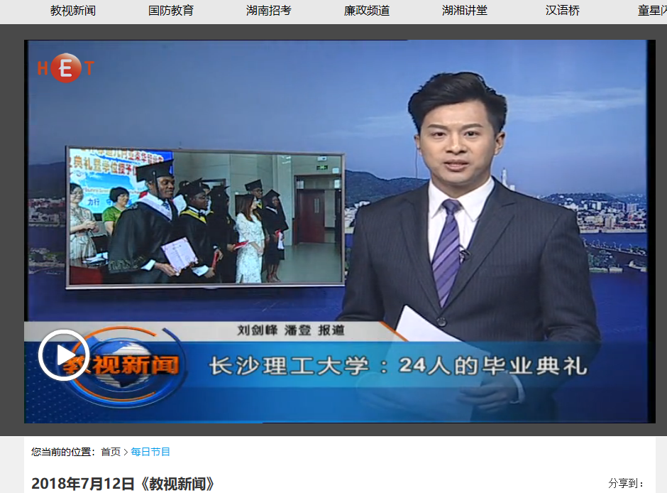 湖南教育电视台7月12日教视新闻中,以《304永利集团官网入口:24人的毕业典礼》为题,对永利官网举行的2018届校企合作培养赤道几内亚来华学生毕业典礼暨学位授予仪式进行了报道。