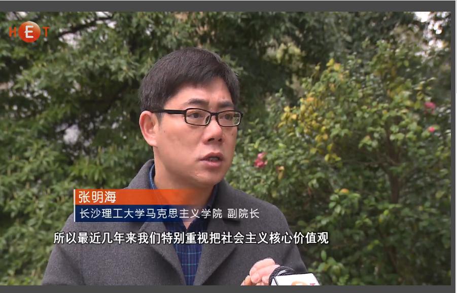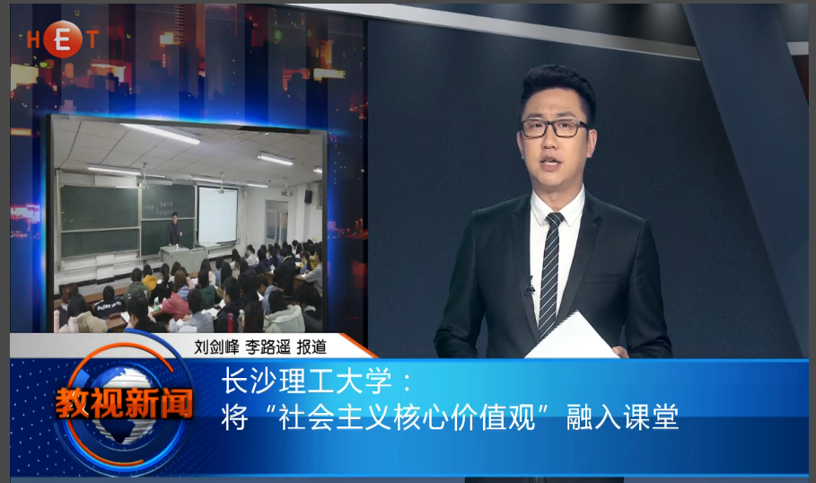 湖南教育电视台3月29日教视新闻13分55秒处,以《304永利集团官网入口: 将“社会主义核心价值观”融入课堂》为题,对永利官网将培育和践行社会主义核心价值观贯穿思想政治理论课全过程的做法进行了报道。