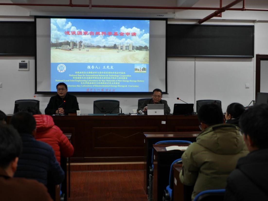 为帮助教师更好地准备2019年度国家自然科学基金申报工作,提高申报质量,1219日下午材料学院邀请湘潭大学研究生院院长、博士生导师王先友教授在新能源大楼1-302室作了国家自然科学基金申请专题讲座。讲座由院党总支书记张国强主持,学院相关教授、老师和学生等50余人参加。