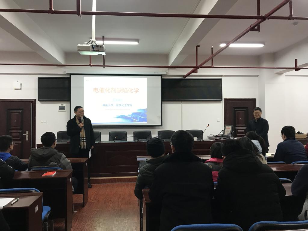 本次讲座由国家杰出青年基金获得者、博士生导师、湖南大学化学化工学院王双印教授主讲。王双印教授作了题为电催化剂缺陷化学的学术报告。报告会由材料学院党总支书记张国强主持,学校科研部有关领导、材料学院、交通学院、化学学院80余名师生聆听了报告,座无虚席。