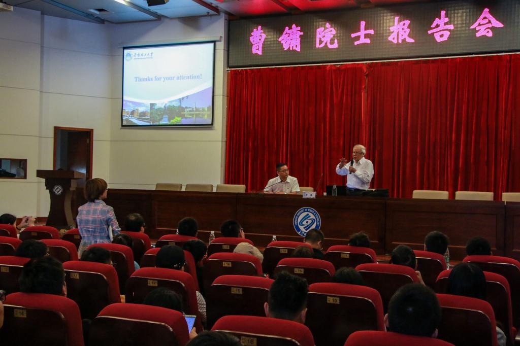 曹镛院士介绍了有机光电材料与器件研究领域近年来的重要进展,结合华南理工大学光电所团队近年在全印刷聚合物发光显示屏及聚合物太阳电池领域的相关工作作了分享,并就相关领域的需要解决的主要科学问题及应用前景进行了讨论。时长一个半小时的精彩的学术报告,深深地吸引了全场师生。