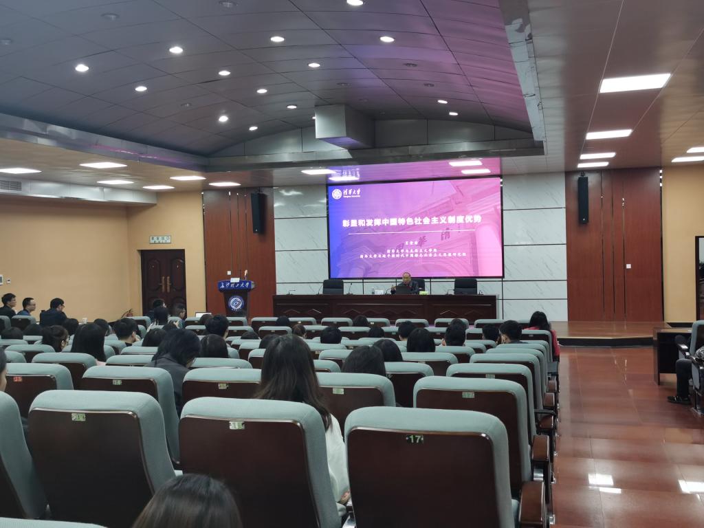 肖贵清教授首先介绍了党的十九届四中全会的基本精神和重大意义。他从怎样认识中国特色社会主义制度优势、中国特色社会主义制度优势有哪些、如何将制度优势更好地转化为国家治理效能等三个方面深入分析了中国特色社会主义制度的显著优势,指出这些显著优势是我们坚定中国特色社会主义道路自信、理论自信、制度自信、文化自信的基本依据。