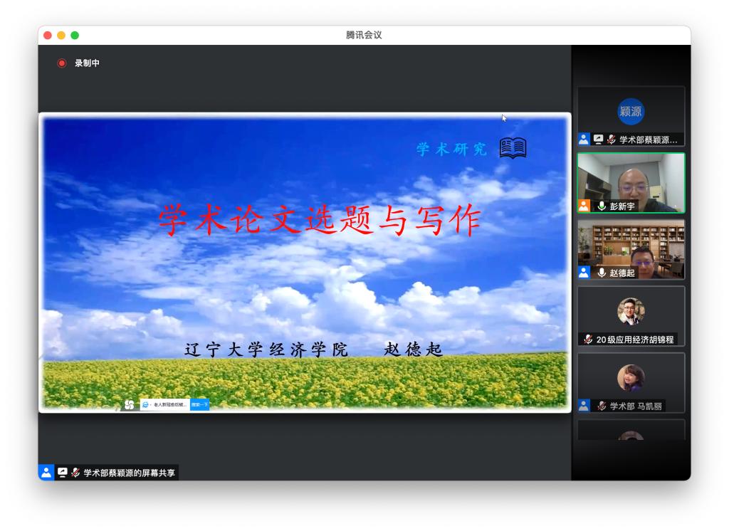 11月17日晚,辽宁大学经济学院副院长赵德起开展了“学术论文选题与写作”线上专题讲座。此次讲座是第十六届研究生博力学术论坛之经济全球化与管理创新专题论坛第三期,讲座由永利官网经管学院院长陈银娥主持,副院长彭新宇、辅导员周路路及学院近300名硕士研究生、本科生参加。