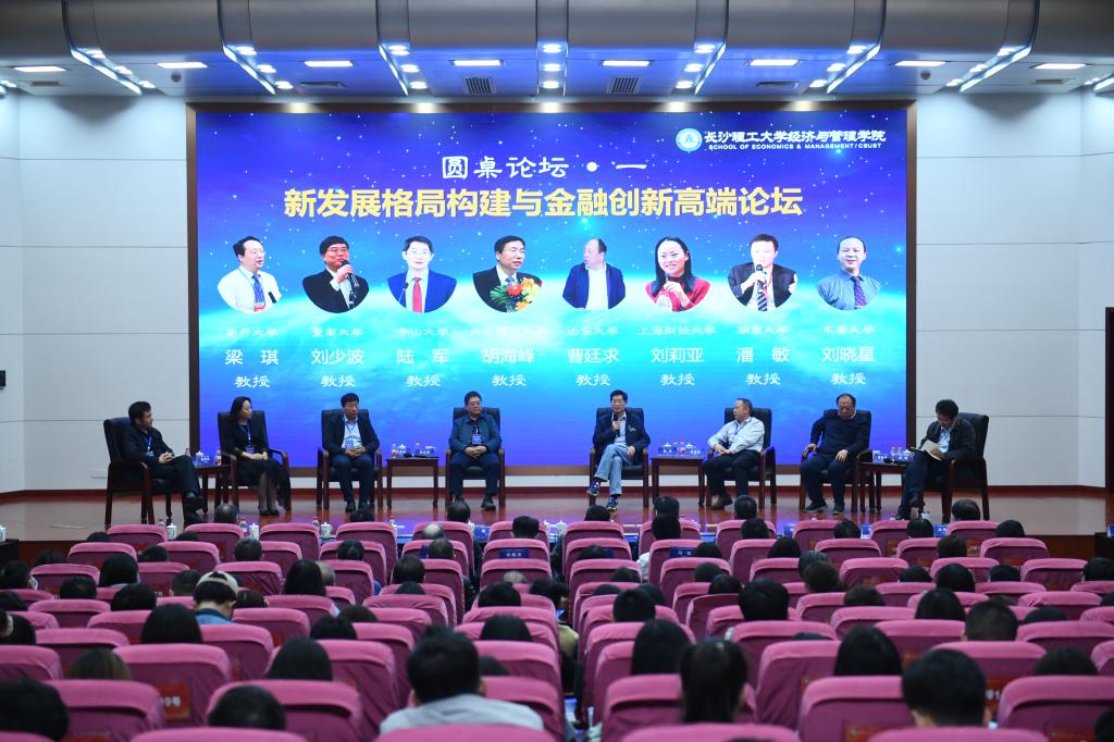 主旨演讲结束后是圆桌论坛环节。第一场圆桌论坛的主题为“新发展格局构建与金融创新”,由长江学者特聘教授、南开大学党委副书记梁琪教授主持。暨南大学刘少波教授、中山大学陆军教授、北京师范大学胡海峰教授、山东大学曹廷求教授、上海财经大学刘莉亚教授、湖南大学潘敏教授、东南大学刘晓星教授等7位专家进行了发言和讨论。专家们讨论了新发展格局构建背景下金融创新“为什么要做”“要做什么”及“怎么做”这三个问题,阐述了各自的观点和建议,并鼓励在座的青年学子们挺起脊梁,要有理论的坚守和立场观点的坚持。
