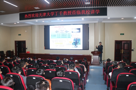 丁千教授围绕认识振动和工程结构振动研究两方面内容与师生分享。近三个小时的报告中,丁教授从振动理论基础知识、振动的特征、模型和控制四个方面进行了介绍,让与会者对振动有一定的认识和理解;在工程振动研究部分,他介绍了振动在工程实际的应用,如航空航天发动机、火箭、高速列车,并重点介绍了力学超结构与振动利用和大数据与结构振动。