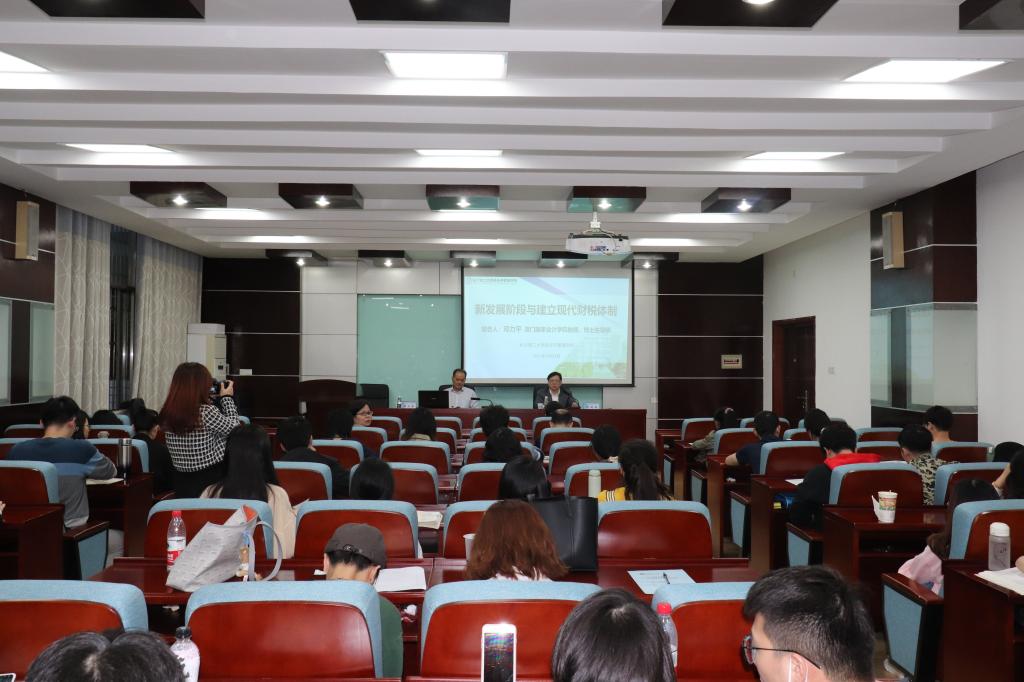 4月29日晚,厦门国家会计学院博士生导师、厦门大学闽江学者特聘教授邓力平教授于金盆岭校区七教212作了题为“新发展阶段与建立现代财税体制”的学术讲座。副校长刘建民,经管学院院长陈银娥、副院长王治、学院部分老师及硕士研究生共80余人参加讲座。本次讲座由刘建民教授主持。
