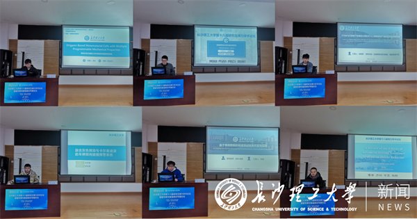 曾鹏、周惠来等12名研究生分别“Origami-Based Metamaterial Cells with Multiple Programmable Mechanical Properties”“后排成员安全带约束系统研究”等角度做学术报告。