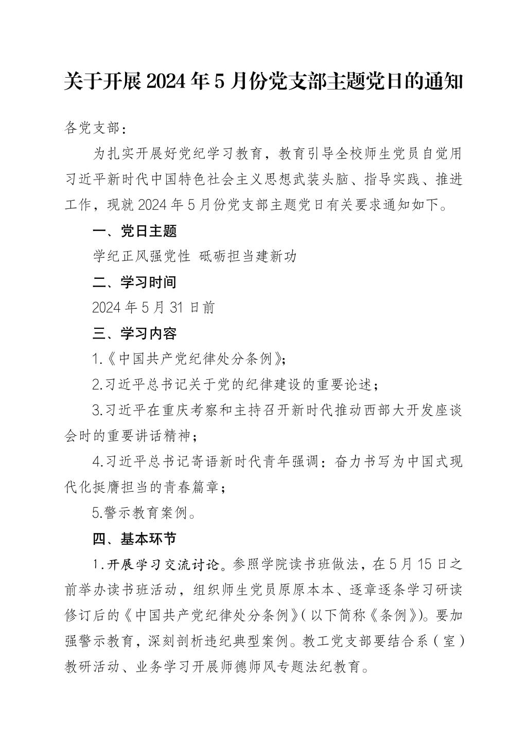 关于开展2024年5月份党支部主题党日的通知