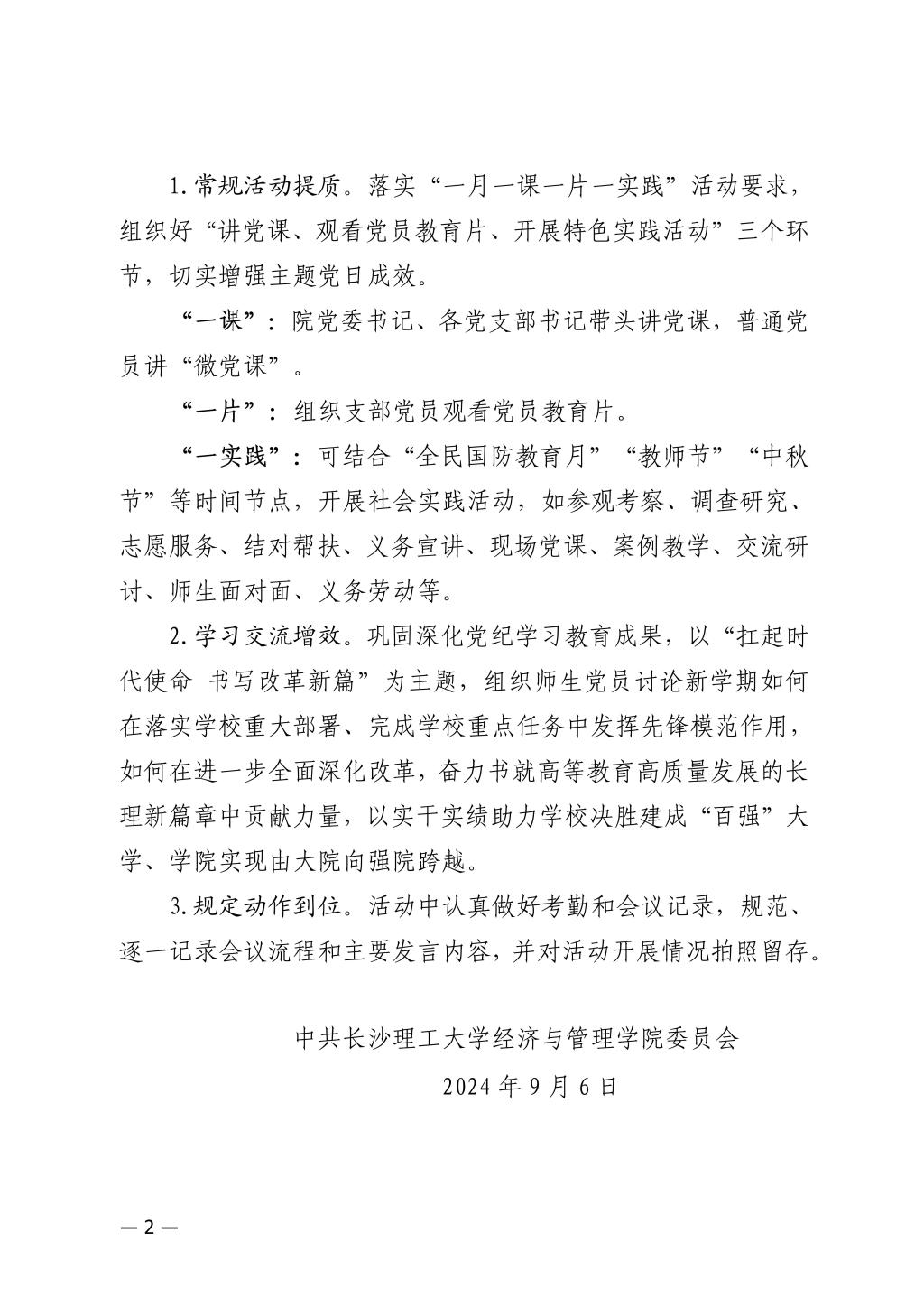 关于开展2024年9月份党支部主题党日的通知