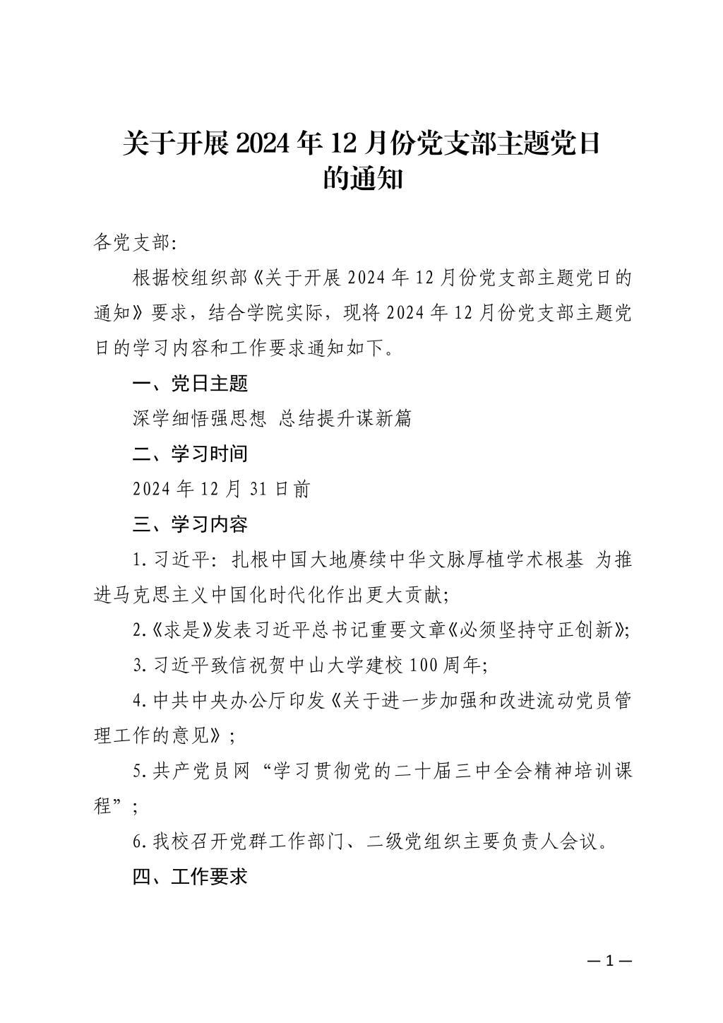 关于开展2024年12月份党支部主题党日的通知