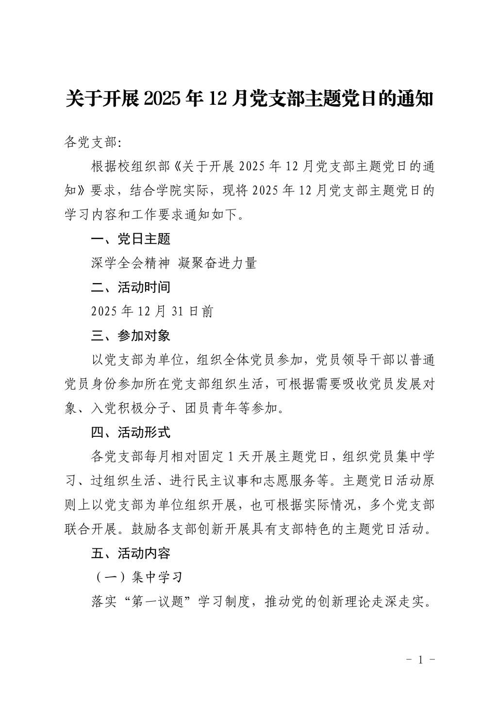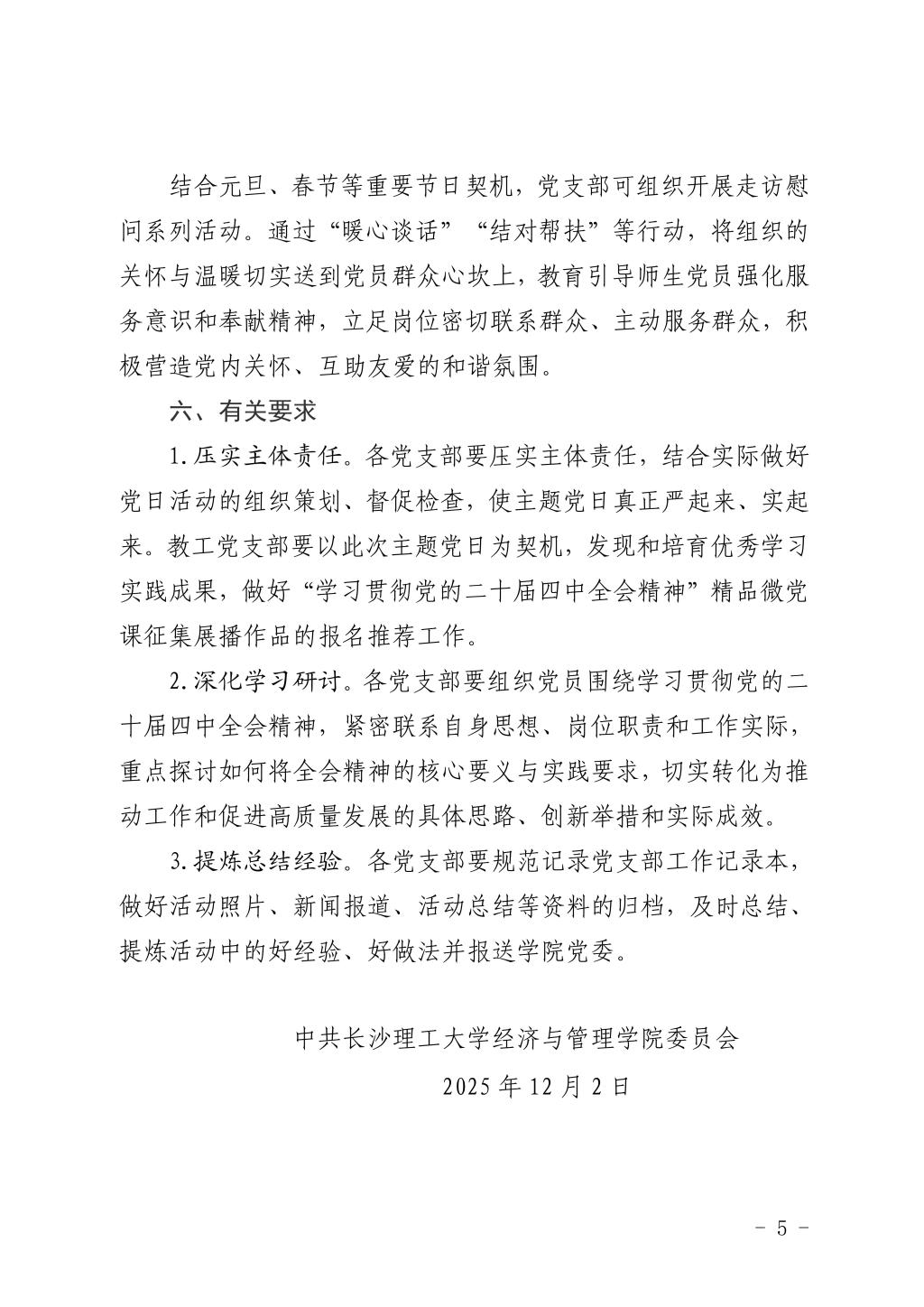 关于开展2025年12月党支部主题党日的通知