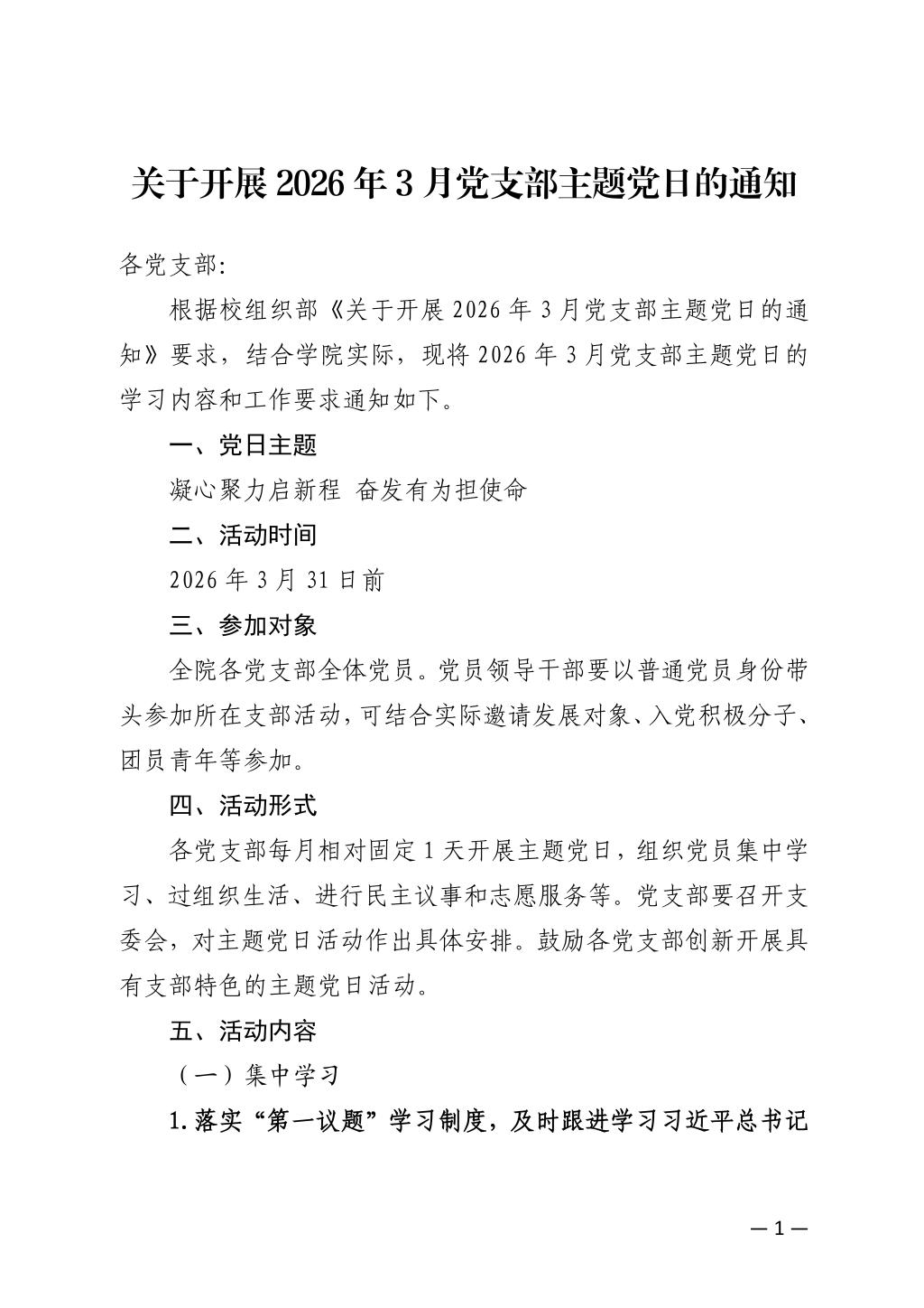 关于开展2026年3月党支部主题党日的通知