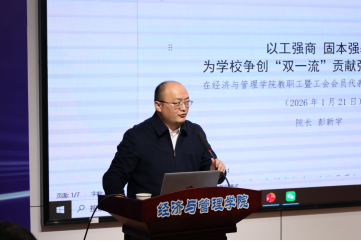 2026年1月24日下午,经济与管理学院在12教200报告厅召开第五届六次教职工代表大会。本次会议由学院工会主席汪功伟主持,学院领导班子和教职工代表齐聚一堂,共商学院发展大计。