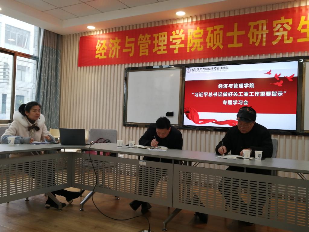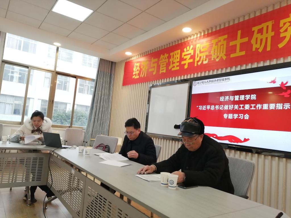 12月16日上午,经济与管理学院在金盆岭校区七号教学楼2楼会议室召开“习近平总书记做好关心下一代工作重要指示”专题学习会议。本次会议由院党委副书记唐青主持,院党委书记王宏、关工委特邀组织员陈均杰老师以及20级辅导员老师参与本次会议。