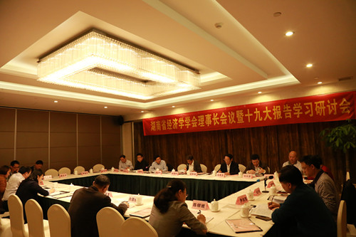 2017年10月28日,由304永利集团官网入口经济与管理学院、现代服务业发展与湖南新型城镇化省级2011协同创新中心承办的湖南省经济学学会理事长会议暨党的十九大报告学习研讨会在长沙金麓国际大酒店成功举办。湖南省经济学学会理事长刘茂松、学会顾问朱有志、副理事长王耀中、唐宇文、曾福生、刘长庚、柳思维、李松龄、刘新年、李定珍、肖万春、王兆峰、尹向东、向国成(代表)、尹少华(代表),以及部分常务理事参加了会议。我院院长陈银娥、副院长彭新宇,以及部分师生参加了会议。会议由理事长刘茂松教授主持。