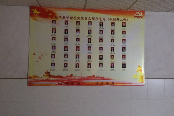 为加强宿舍文化建设,锤炼学生党员的党性修养;结合“两学一做”学习教育。经济与管理学院在学生宿舍设立“文明示范岗”,日前,在至诚轩1栋、弘毅轩2栋和敏行轩的党员宿舍和楼栋一层进行了挂牌。凡有学生党员的宿舍楼栋设立“党员责任区”,每间有学生党员的宿舍为“党员示范岗”。