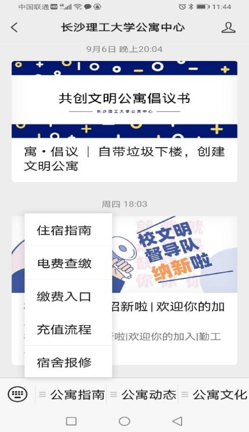 1.扫码关注“304永利集团官网入口公寓中心”微信公众号;