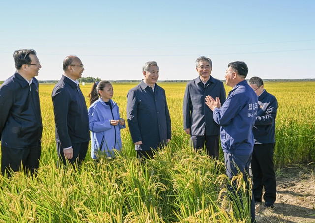 9月10日至13日,中共中央政治局常委、中央纪委书记李希到黑龙江调研。这是9月13日上午,李希在抚远市玖成水稻种植合作社调研。新华社记者 张领 摄