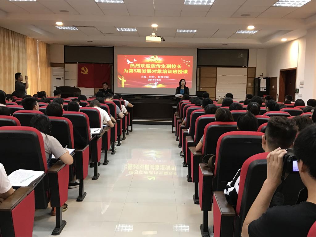 副校长谈传生为计通、经管、材料学院第5期发展对象党校培训班授课