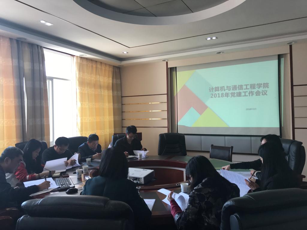 方琼对学校工作要点、学校组织工作要点、学校宣传工作要点、学校统战工作要点和《计算机与通信工程学院二0一八年教职工思想政治工作安排意见》进行了解读,指出2018年学院工作总体要求是:全面贯彻党的十九大精神,以习近平新时代中国特色社会主义思想为指导,进一步加强和改进党的领导;不断深化改革,拓展开放视野,激发创造伟力,弘扬奋斗精神;坚持立德树人,提升人才培养质量;全面推进“双一流”建设,提升内涵发展水平。