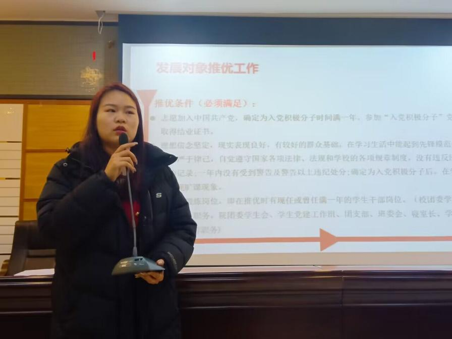 会上,姚依琳对2022-2023学年第一学期下班党员工作进行了总结和评优,对下班党员认真负责的工作态度给予了充分肯定,并公布了优秀下班党员名单。同时,姚依琳还指出下班党员工作存在的问题,并对本学期工作作出规划和展望。随后,赵之润向下班党员介绍了推优工作的相关流程和注意事项,为下班党员日后工作的进一步开展打下了基础。