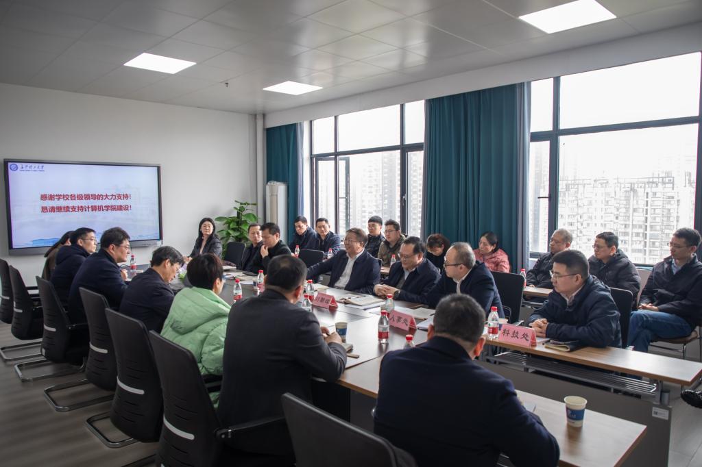 3月14午,校党委书记付宏渊带队来到计算机学院调研指导工作。校党委委员、副校长刘朝晖,党政办、人事处、教务处、科技处、研究生院负责人陪同调研,计算机学院全体班子成员、教授委员会主任及各系(科室)主任支部书记参加了会议。