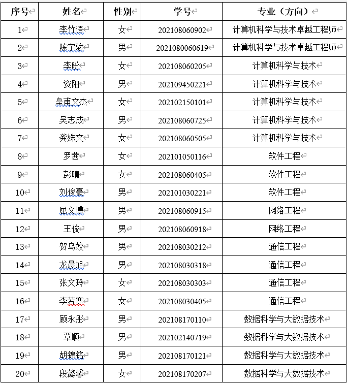计算机与通信工程学院拟推荐2025年免试攻读硕士研究生名单公示