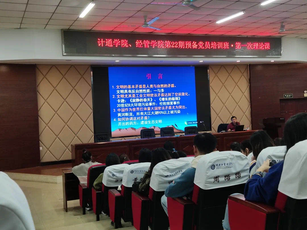 11月3日晚7:00,计通学院与经管学院在文科楼圆厅联合举办了第22期预备党员培训,我院第22期预备党员全体成员参加了本次培训,共同学习最新一期的理论课。