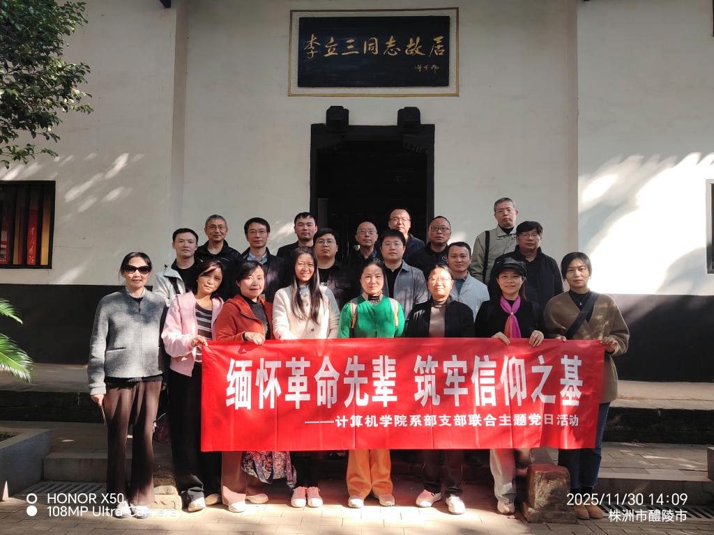 2025年11月30日,计算机学院网络工程系党支部、计算机应用系党支部和实验中心党支部全体党员赴醴陵市李立三故居,开展“缅怀革命先辈,筑牢信仰之基”主题党日活动。此次活动旨在通过实地参观学习形式,引导广大党员教师从革命先辈的光辉事迹中汲取精神力量,坚定理想信念,赓续红色血脉。