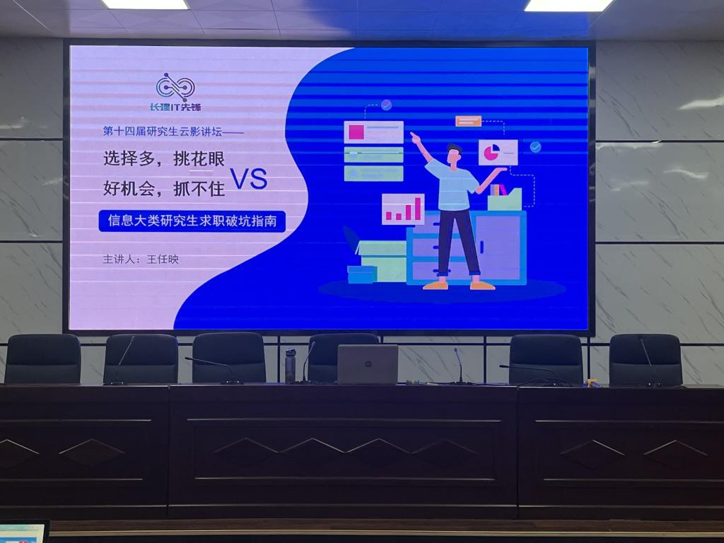 为帮助同学们确定目标职业,准确找到适合的工作方向,2022年10月28日晚七点,304永利集团官网入口第十四届云影讲坛之“选择多,桃花眼VS好机会,抓不住”——信息大类研究生求职破坑指南在金盆岭校区四教报告厅举办。会议由雷莹主持,王任映老师主讲,计通学院党委副书记王觊靖,助理辅导员李双翼,计通学院,物电学院共计150多名2021级研究生参加。