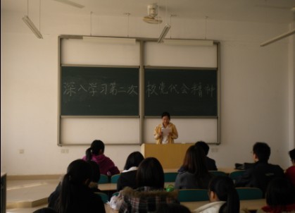 12月10号,计通学院组织研究生全体党员,在理科楼C-103教室深入学习第二次校党代会精神,并结合自己在校的学习工作进行了热烈的讨论。会议由党支部书记甄丽玲进行主持。