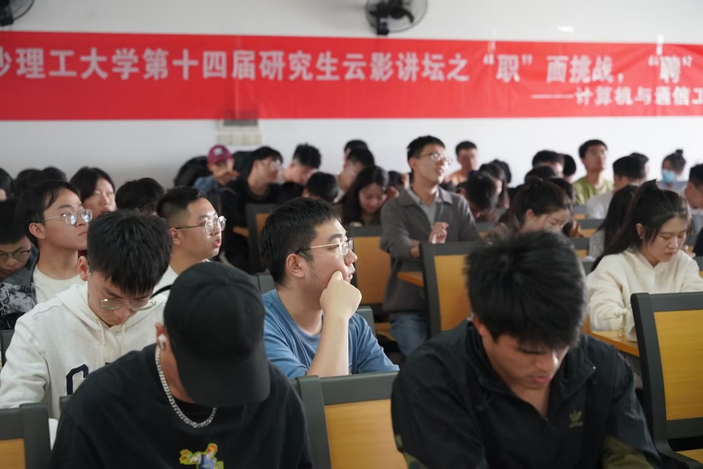 10月21日下午3点,计算机与通信工程学院云影讲坛在金盆岭校区四教507教室拉开帷幕。主题为“职”面挑战,“聘”搏未来。本次讲座主要针对2021、2022级研究生,提供研究生求职就业指导。