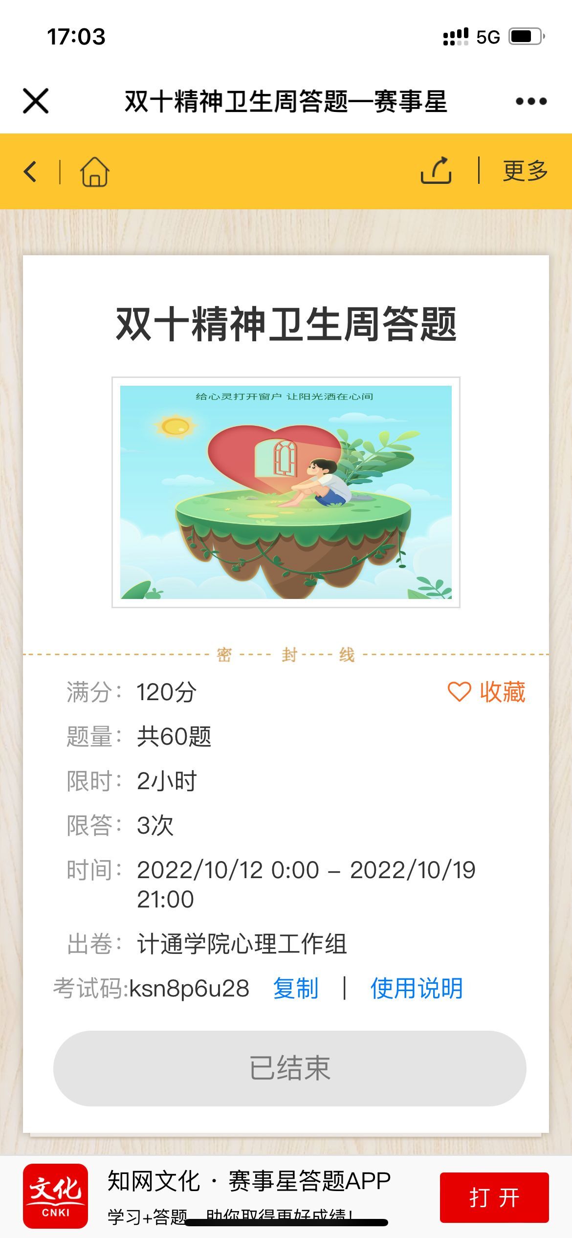 为增进同学们对“世界精神卫生日”的了解,创新心理健康教育形式,增强同学们的心理健康知识,计通学院组织开展了“构建和谐校园、共护身心健康”——世界精神卫生周知识竞赛。