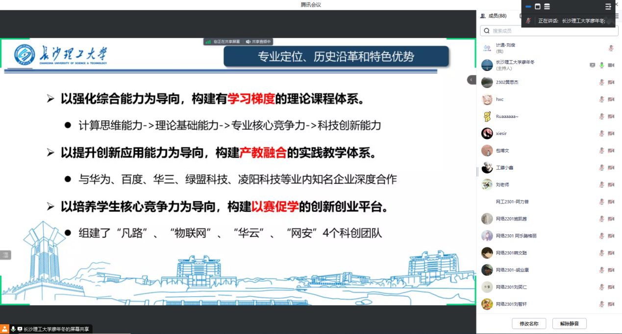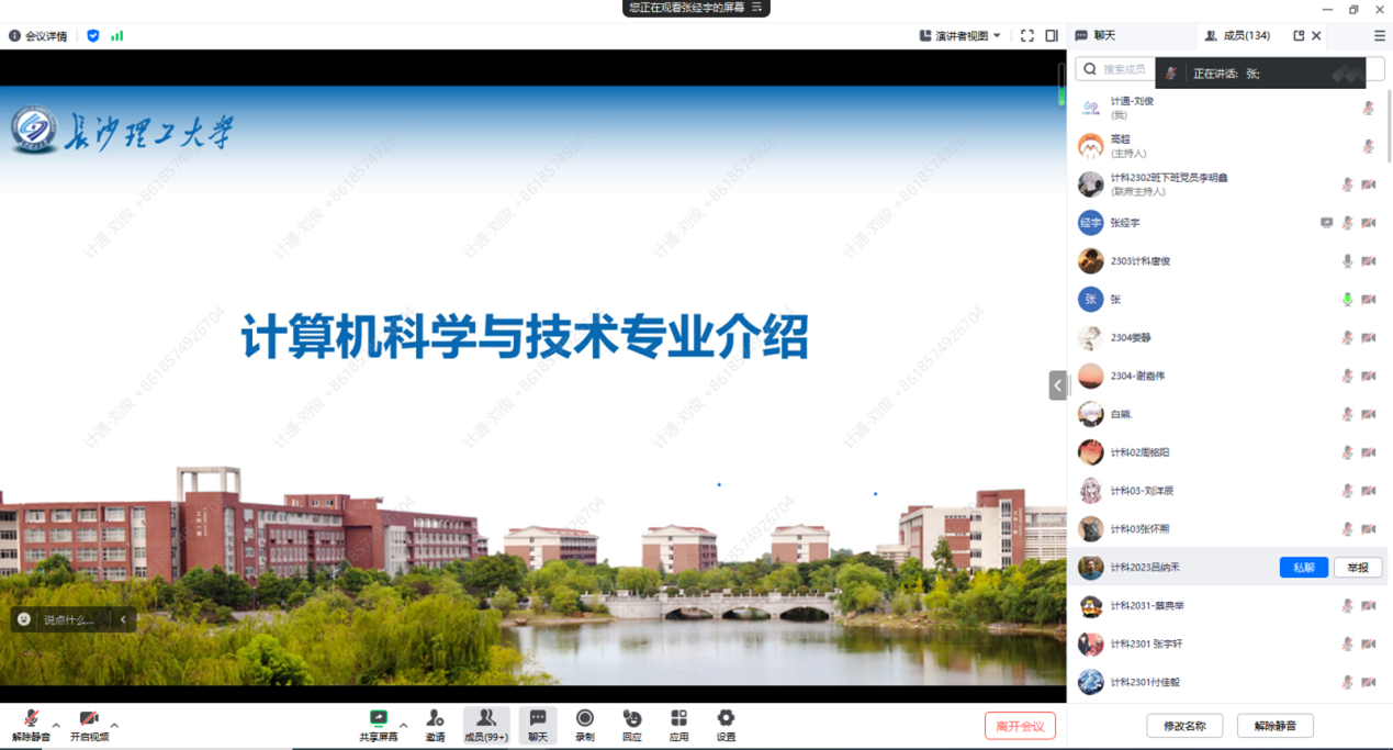 9月13日下午,计通学院各专业通过腾讯会议线上直播的方式举行2023级新生专业介绍大会,各班下班党员、下班团干及627名新生参加此次大会,会议由各系系主任主持。