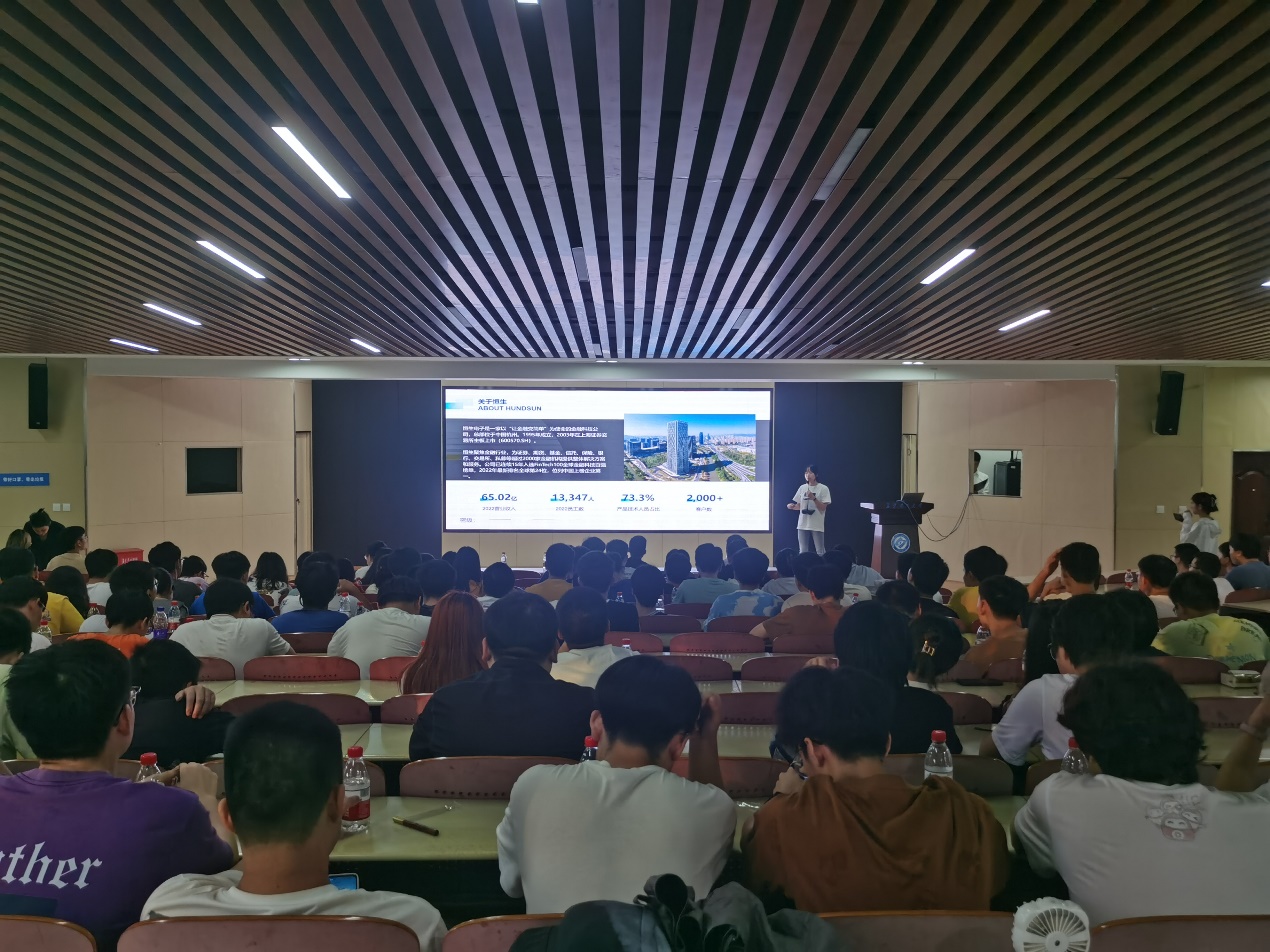 计通学院党委副书记王觊婧首先对参与此次活动的来宾表示欢迎,并简要地介绍了本次训练营的情况,希望同学们能够把握住这次提升技能和收获知识的机会,积极报名此次训练营。接着,恒生学院校企合作经理黄霞蔚从历史,业务,荣誉,以及承担的社会责任等方面介绍了恒生恒生资深技术专家张绍震为现场的同学们进行了金融科技行业全揭秘。张绍震从金融行业现状,金融科技内涵,金融科技需求三个方面为同学们详细的阐述了金融科技重点介绍了恒生自主研发的金融数字化基础设施——LIGHT。LIGHT与当前的主流技术栈结合,满足金融行业对云原生、高性能、数智化的技术需求引起了同学们的强烈兴趣。对于同学们关注的训练营选拔,黄霞蔚从创办背景、培养模式、学习收益与结果应用、团队考核评价、集训课表及选拔流程几个方面介绍了情况,并邀请2022年训练营优秀学员,大数据19级校友赵恒星分享了他的训练营经历以及求职经验,同时结合自身提出了一些宝贵的建议。最后,在所有参会同学的齐声高呼“计通-恒生”下,训练营招生宣讲圆满结束