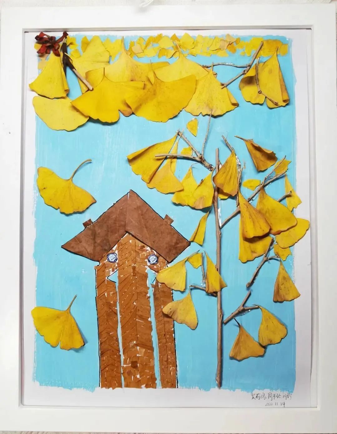 有的同学交了彩铅绘画,用手中的彩铅,抓住校园美景的一刻定格,有的同学以口罩为主要材料制作了小台灯,象征温暖、希望的力量,就像今年秋冬季流感、合胞病毒感染等新增不断,虽然大家佩戴口罩看不见对方的微笑,但是总有“病散花开”的那一天。有的同学择捡拾校园深秋的黄色银杏叶,制成各种美丽的图案......