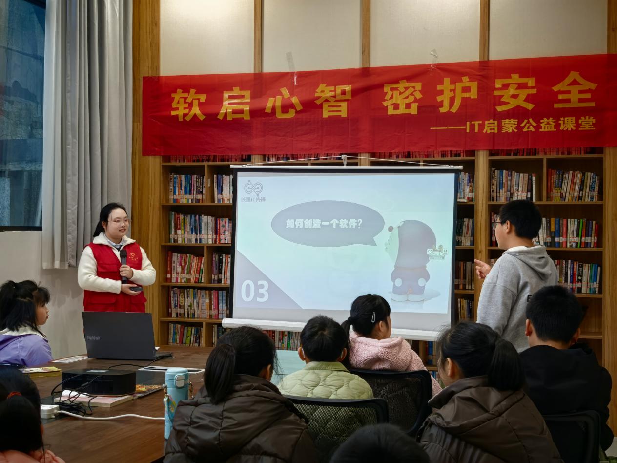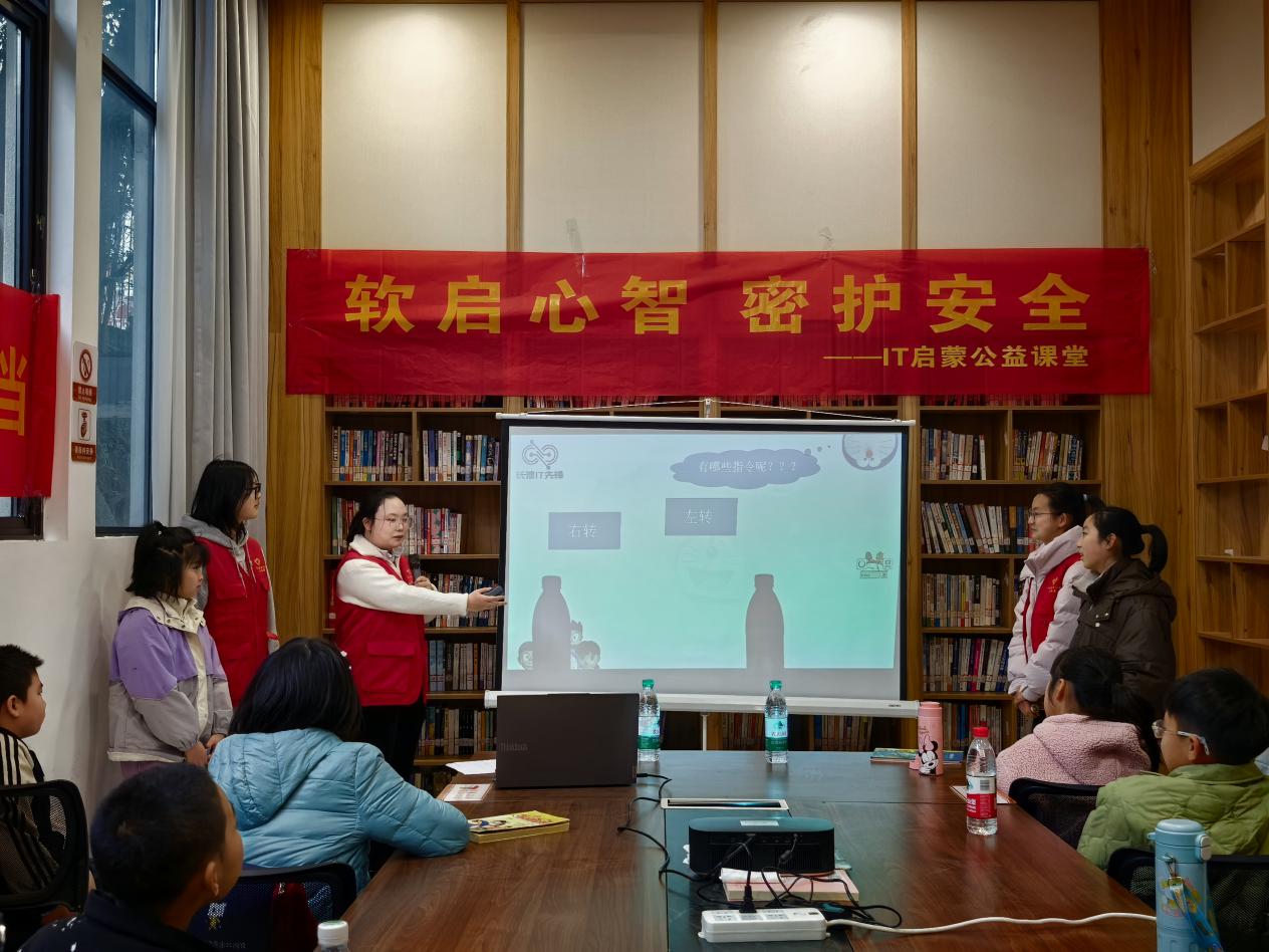 活动现场,志愿者们拿出笔记本电脑、键盘、鼠标等实物设备,一边演示一边讲解,孩子们在趣味问答中加深了对计算机软硬件的认识。随后,进入“电脑软件设计师”互动剧场环节,孩子们分组扮演程序和机器人,通过角色扮演亲身体验软件设计逻辑。最后,在密码探索之旅中,志愿者们化身信息安全小卫士,用“带锁的盒子”作生动比喻,引导孩子们对照密码表认真破译乱码,在轻松愉快的氛围中建立起信息安全的“免疫系统”。
