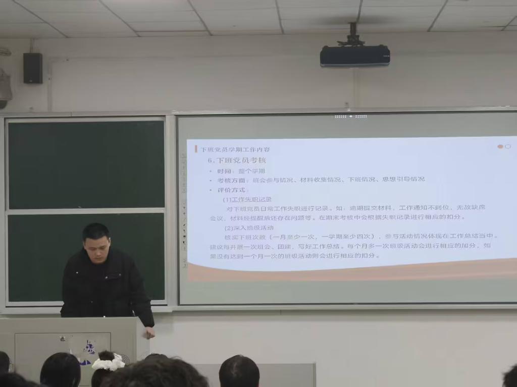 同时,会议对下班党员履职考核提出明确要求,从工作失职记录、深入班级活动、学期末工作总结等维度划定考核标准与奖惩规则,督促全体下班党员认真履职,定期深入班级开展入党指导和思想引领工作,及时完成材料收集与审核,保障工作稳步推进。
