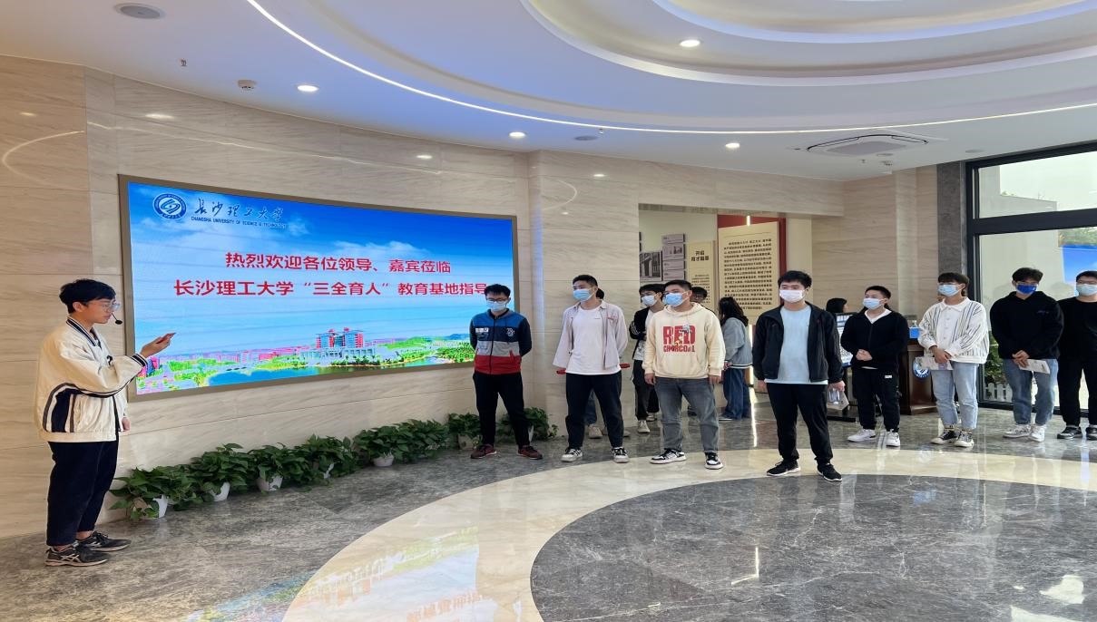 “学弟学妹们大家好,欢迎来到304永利集团官网入口‘立德树人 逐梦报国’——三全育人教育基地。我是今天的讲解员,来自计算机科学与技术20级2班的林彦臻。”