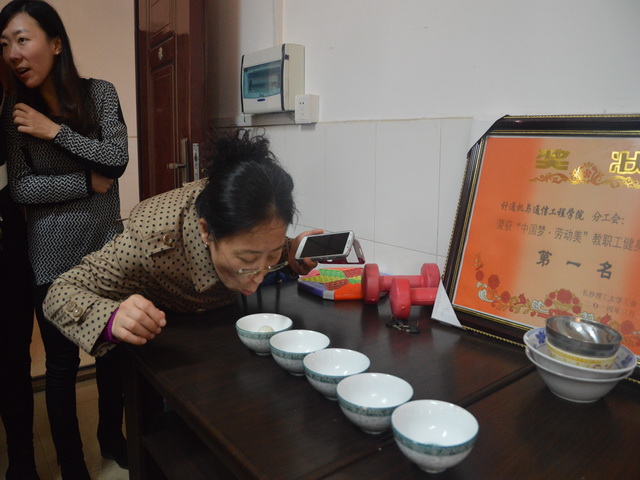 计算机科学与技术系、通信工程系、网络工程系、软件工程系、计算机应用系、实验中心以及行政分工会分别组队参加了包括定点投篮、攻擂守擂、圆桌接力、吹乒乓球等趣味比赛项目。活动的场地很简陋,道具也很简单,但是同志们参与的热情很高,各项活动的参赛点都可见人头攒动,欢声笑语。定点投篮中,实验中心和行政分工会并驾齐驱,以10球的成绩取得第一;在圆桌接力项目中,通信工程系团结一心,力拔头筹;吹乒乓球活动上,软件工程系以6秒的微弱优势险胜行政分工会斩获头名;在攻擂守擂赛里,龙际珍老师以7球的胜利带领网络工程系差点将擂主掀翻下马……