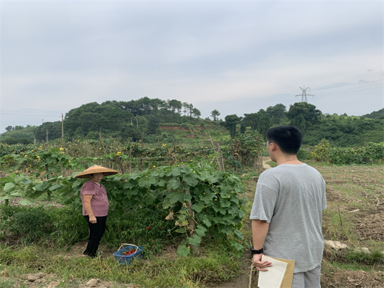 张主任介绍到,政府目前正在推进扶贫产业宣传,加强社会对扶贫工作以及扶贫系列产业的关注度,并接受社会、人民的监督。同时,邵阳市针对2014年以来的扶贫户开展“回头看”工作,踏踏实实做扶贫,在扶贫路上不落下一个人。随后,实践团来到黄家村村民家中进一步询问相关情况。据悉,由于新冠疫情的影响,许多农产品难以销售,加之天气炎热,部分蔬菜难以保存。社区了解后,在扶贫商城等平台上采用线上销售的方式来帮助村民贩售蔬菜,有效缓解了当地村民的燃眉之急。