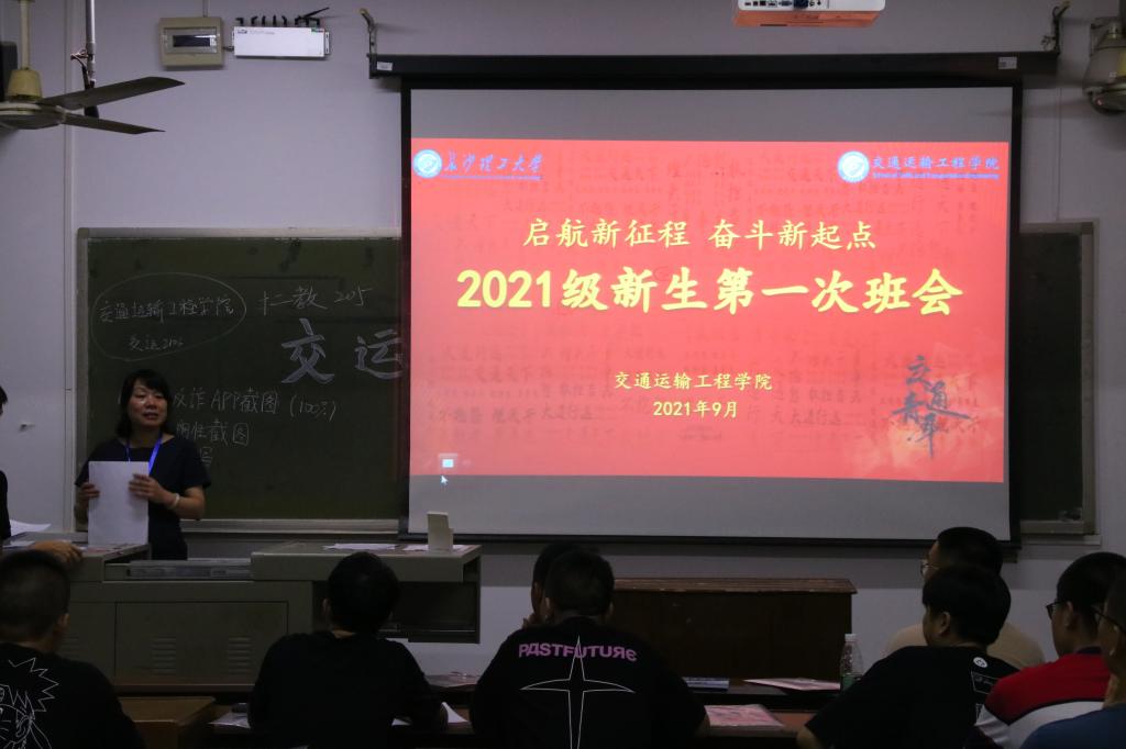 9月7日晚,交通学院各学生班级于金盆岭校区12教召开2021级新生第一次班会,班主任和全体学生参加,下班党员主持。