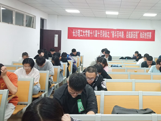 为引导学生关注社会,丰富校园文化生活,拓展课外知识,10月8日晚,交通学院在金盆岭校区十二教和云塘校区工科二号楼、综合教学楼等同时举办了第十八届十月诗会知识抢答赛初赛,本次以“启航新征程”为主题,共计八百余人参加。