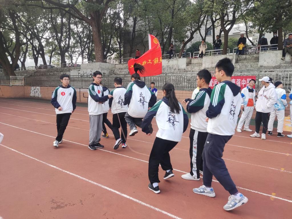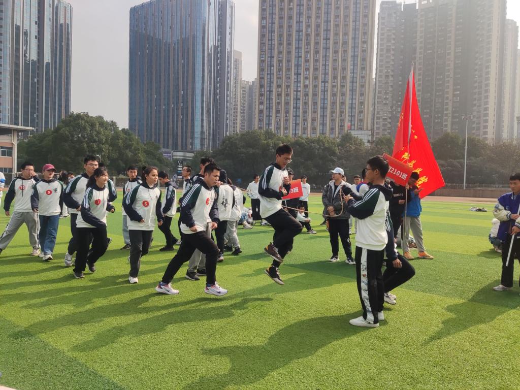 比赛开始前,所有队伍通过抽签分为A、B、C三组。比赛过程中,各参赛队伍依次绕八字型跳长绳,每轮比赛时长为5分钟,代表交通学院的道桥2103班的队员们眼神坚定、脚步紧密,一个接一个地跳过长绳,最终取得总个数567个的好成绩。道桥2103班龙帅感慨到:“尽管比赛刚开始时有些紧张,但大家都全神贯注、沉着冷静,通过不懈努力与团结协作才取得了这样的好成绩!”