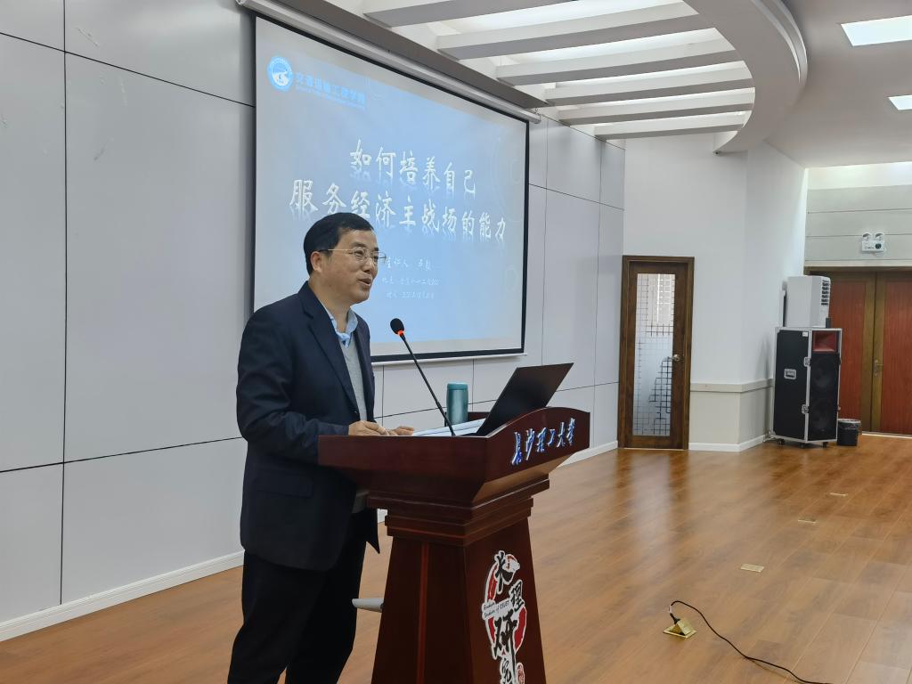 12月21日下午,交通学院于金盆岭校区12教200举行本学期第三次交通未来论坛,论坛主题为“如何培养自己服务经济主战场的专业能力”,本次论坛由交通学院博士生导师卢毅教授主讲,研究生辅导员彭怡峰主持,共有105位研究生、100位本科生参与本次论坛。